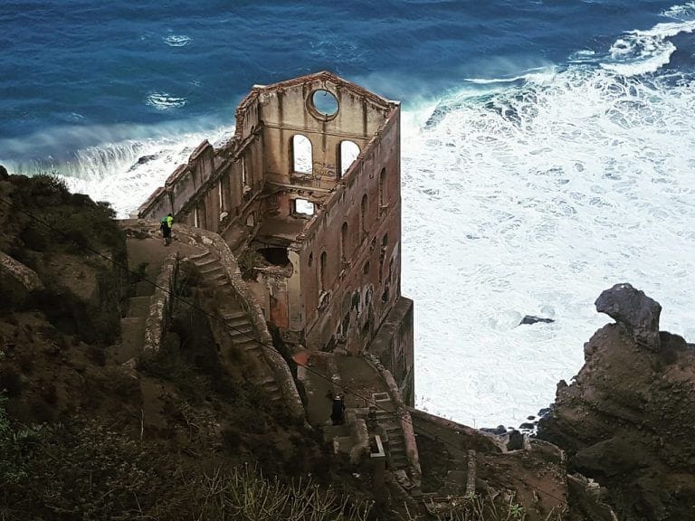 Debida a la cantidad de agua que emanaba este acantilado costero en los Realejos, se construyó esta estación de bombeo hidráulica, que servía para elevar el agua hasta las zonas de cultivo.
